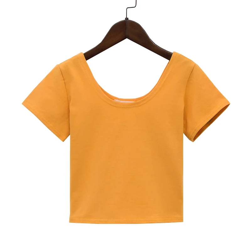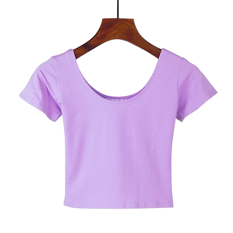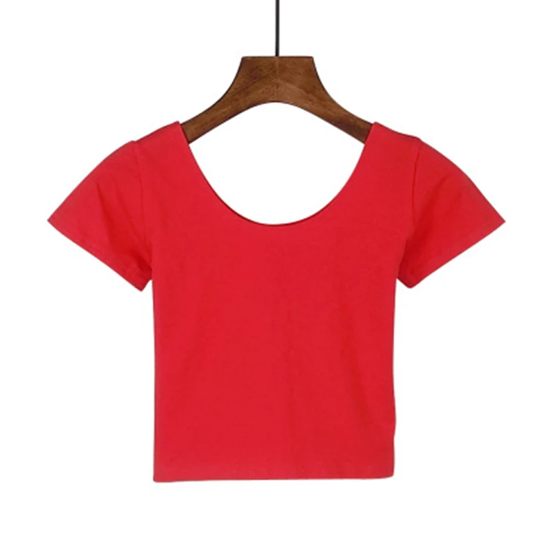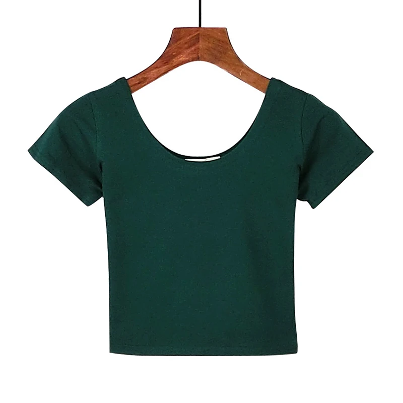 1PCS Ladies Short Sleeve O neck Sexy Crop Top Women Basic Simple Stretch T-shirts Sexy Black U Neck Crop Top