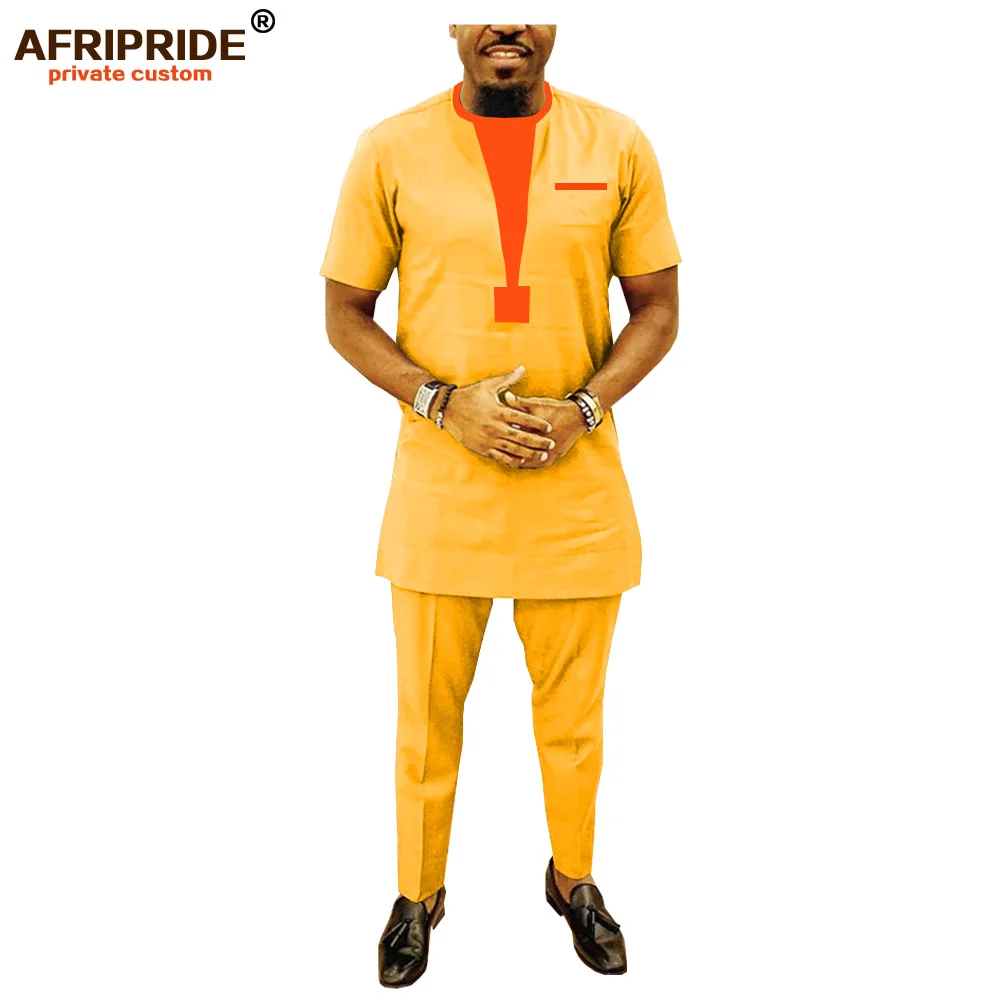 2019 African Men Clothing Traditional Set Dashiki Shirt and Ankara Pants Casual Suit Attire Blue Plus Size AFRIPRIDE A1916021