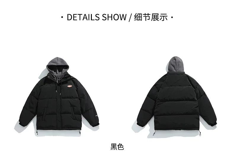 2023 Winter New Unisex Down Cotton Jacket Men's and Women's Hooded Jacket Thickened Fake 2 Pieces of Cotton-padded Bread Jacket