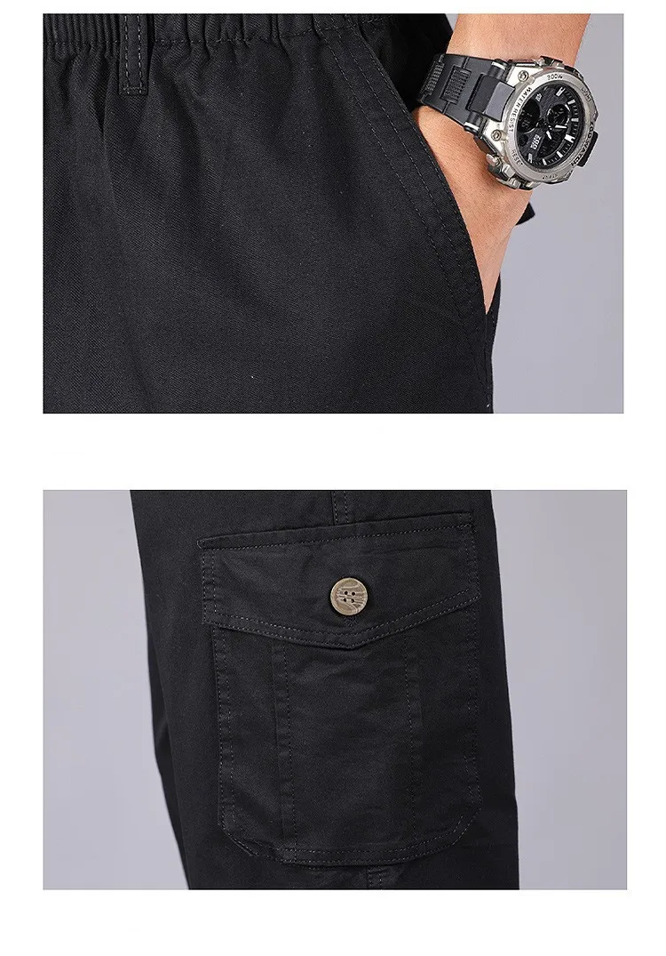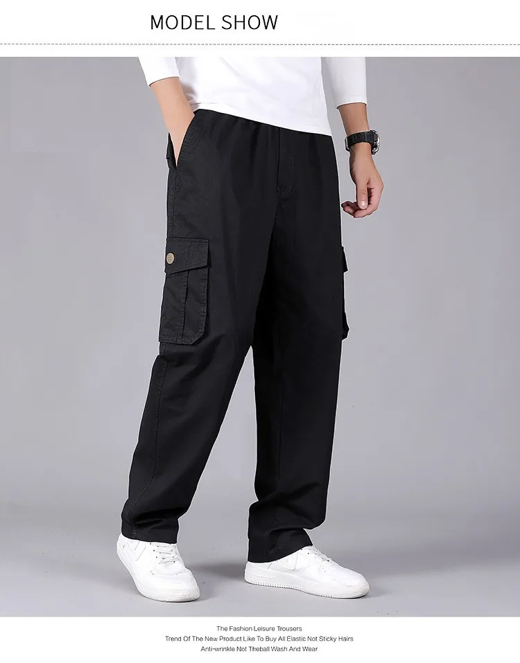 Black, Light Gray, Earthen Yellow, Army Green Men's Trousers Cargo Pants Cotton Elastic Waist Loose Straight Cargo Pants Men 6XL