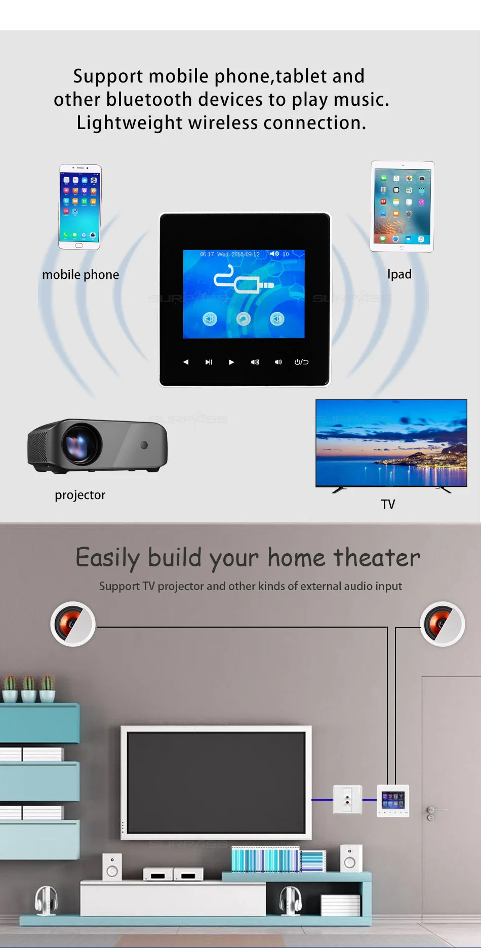 playback. Support bluetooth manually open and automatically open (suitable for hotel use).