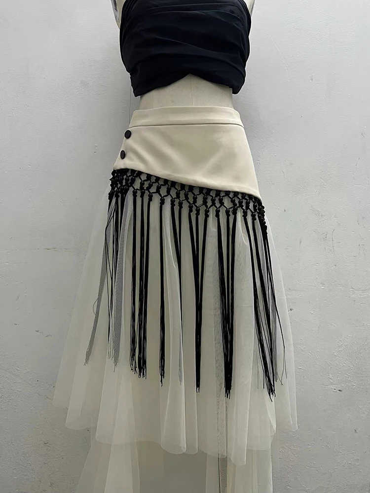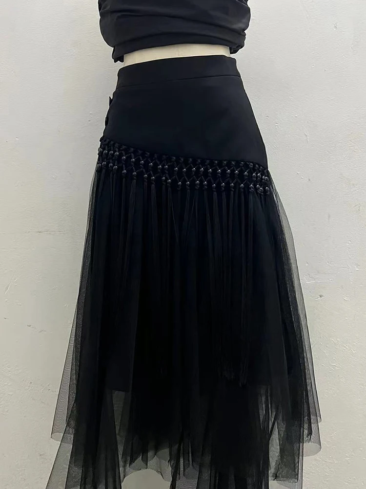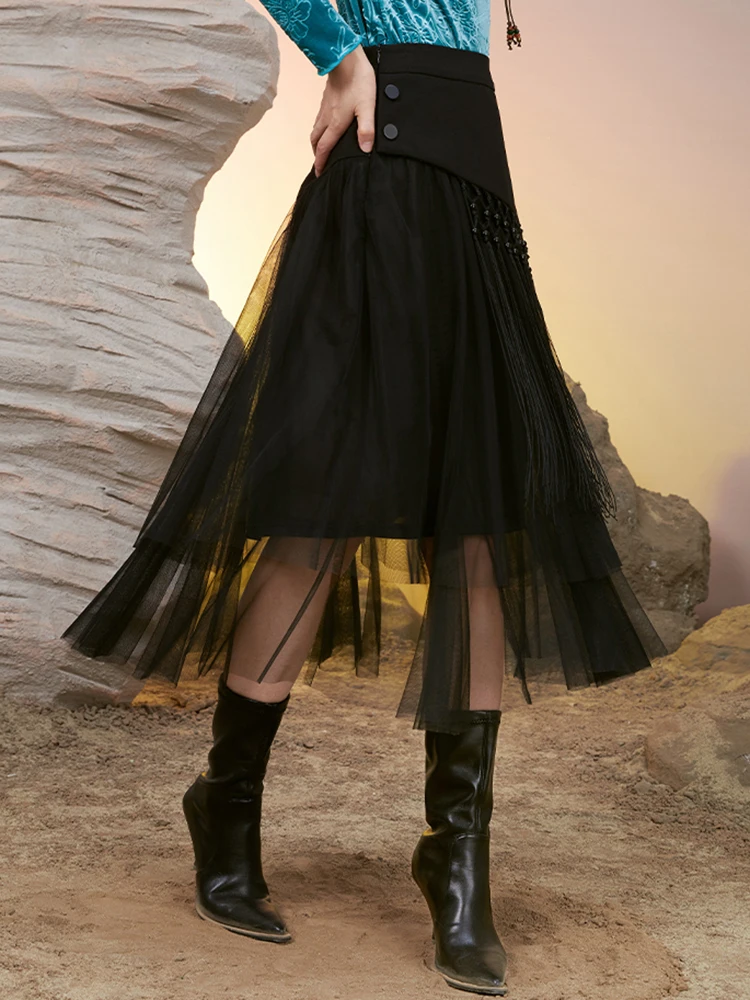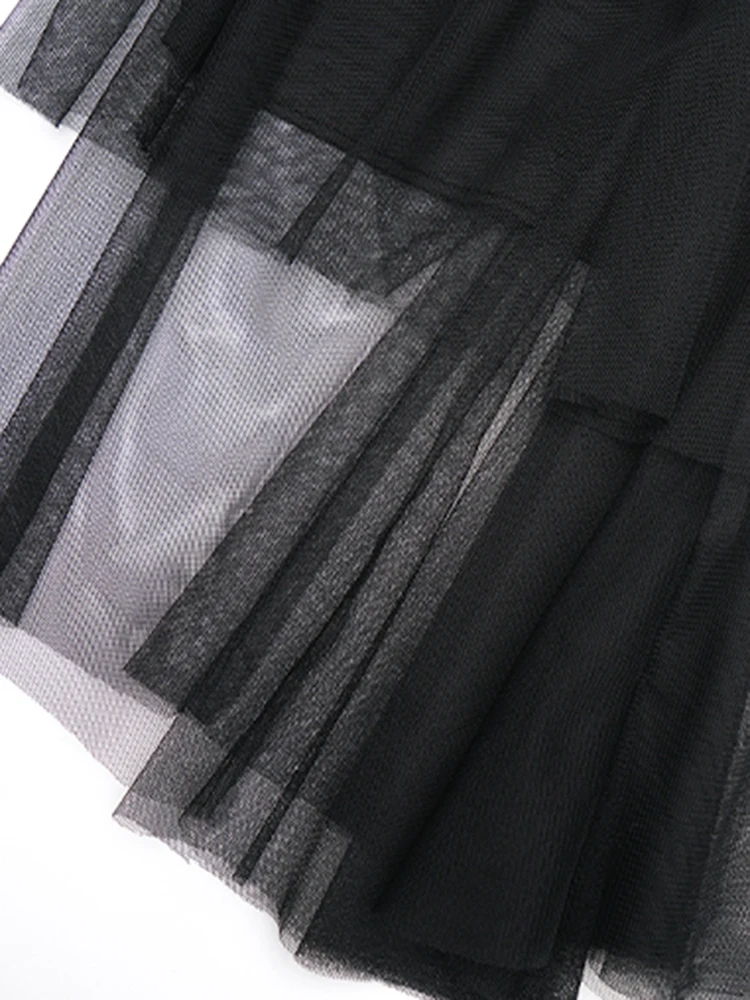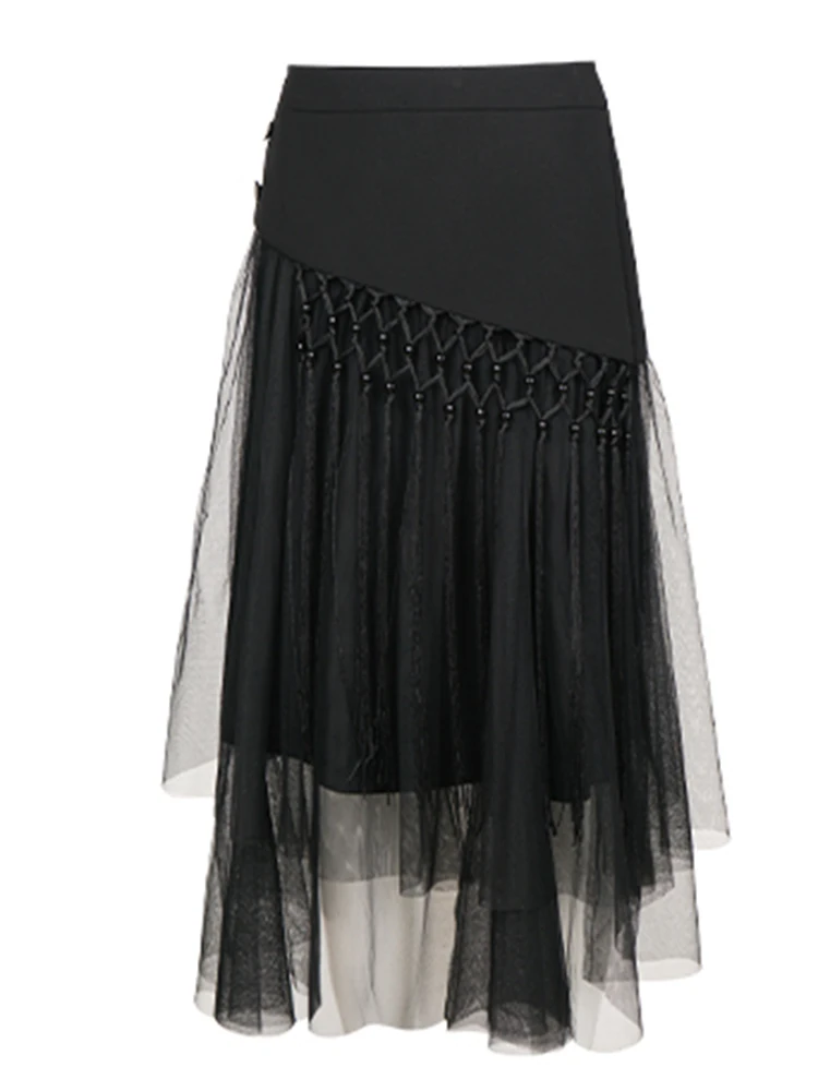CHICEVER Solid Skirts For Women High Waist Patchwork Mesh Minimalist Loose Mid Skirt Female Autumn Clothing Fashion Style 2022
