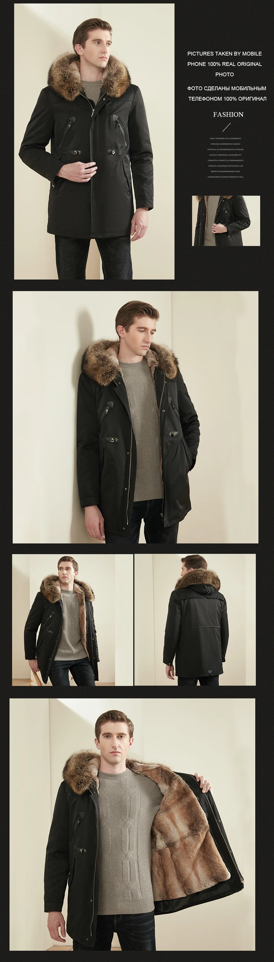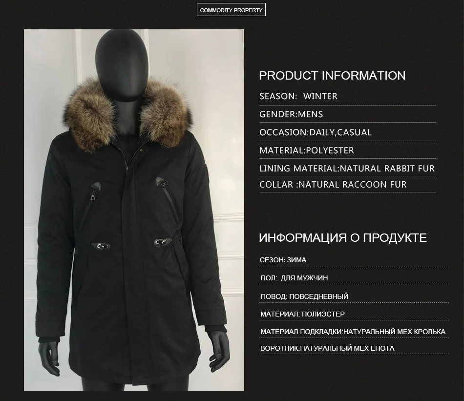 CNEGOVIK Real Fox Fur Collar Rabbit Fur Lined Hooded Parka Winter Mens Outwear boys fur coat New Winter Outwear Classic Jacket