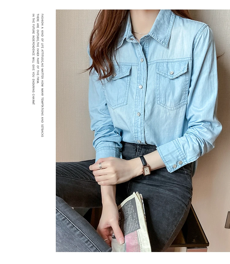 Denim shirt women 2022 spring and autumn new thin bottoming shirt jacket trend