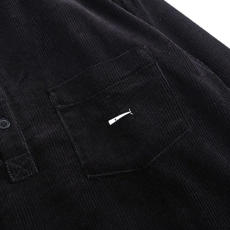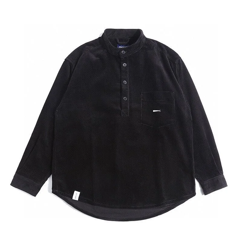 DESCENDANT DCDT Corduroy Little Whale Embroidery Henry Collar Washing Socket For Men And Women Long Sleeve Shirt