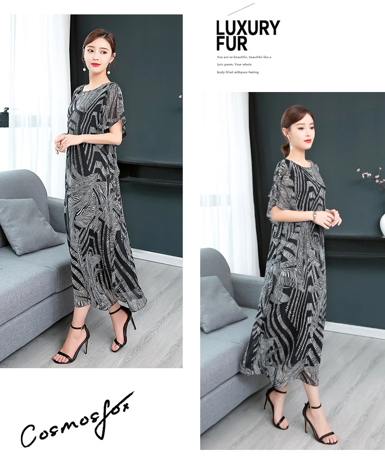 Fashion High Quality New Summer Women Dresses Real Silk Printed Retro Dress Chinese Style Loose Casual
