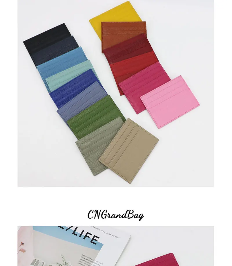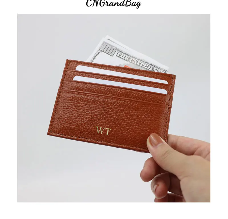 Free Custom Leather Card Holder 100% Cow Leather Credit Card Holder Slim Wallet Men Women Pocket Card Wallet with 6 Card Slots