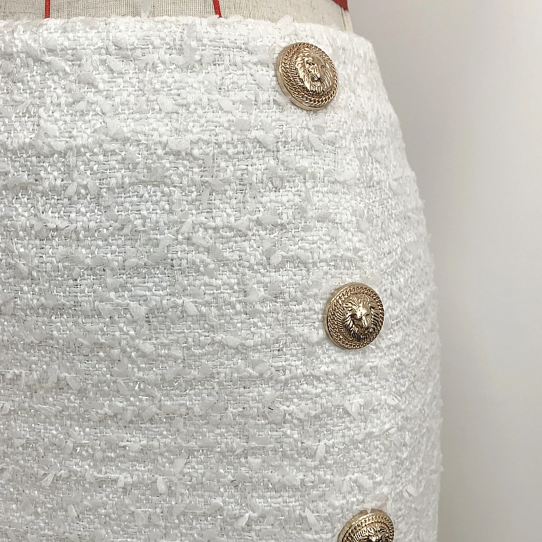 HIGH STREET Newest 2023 Fall Winter Baroque Designer Skirt Women’s Tassel Fringed Lion Buttons Wool Blend Tweed Skirt