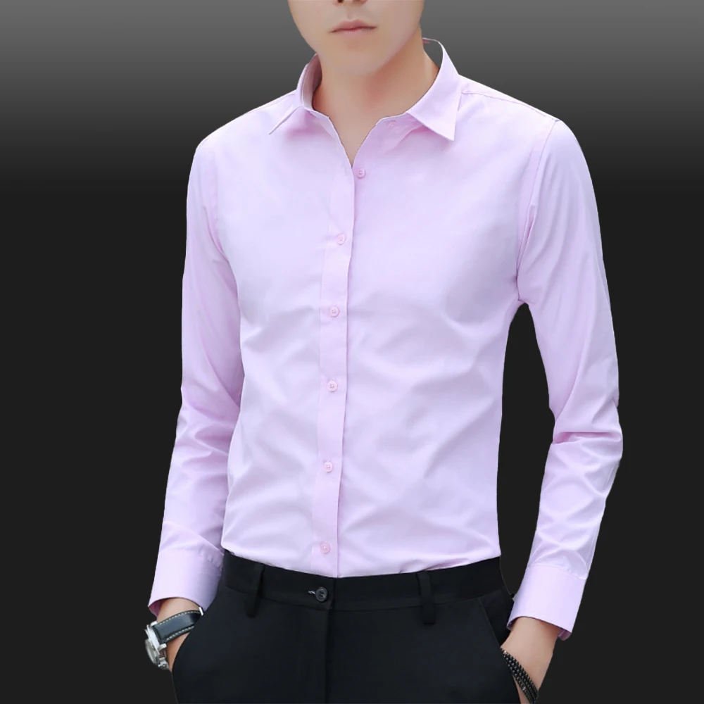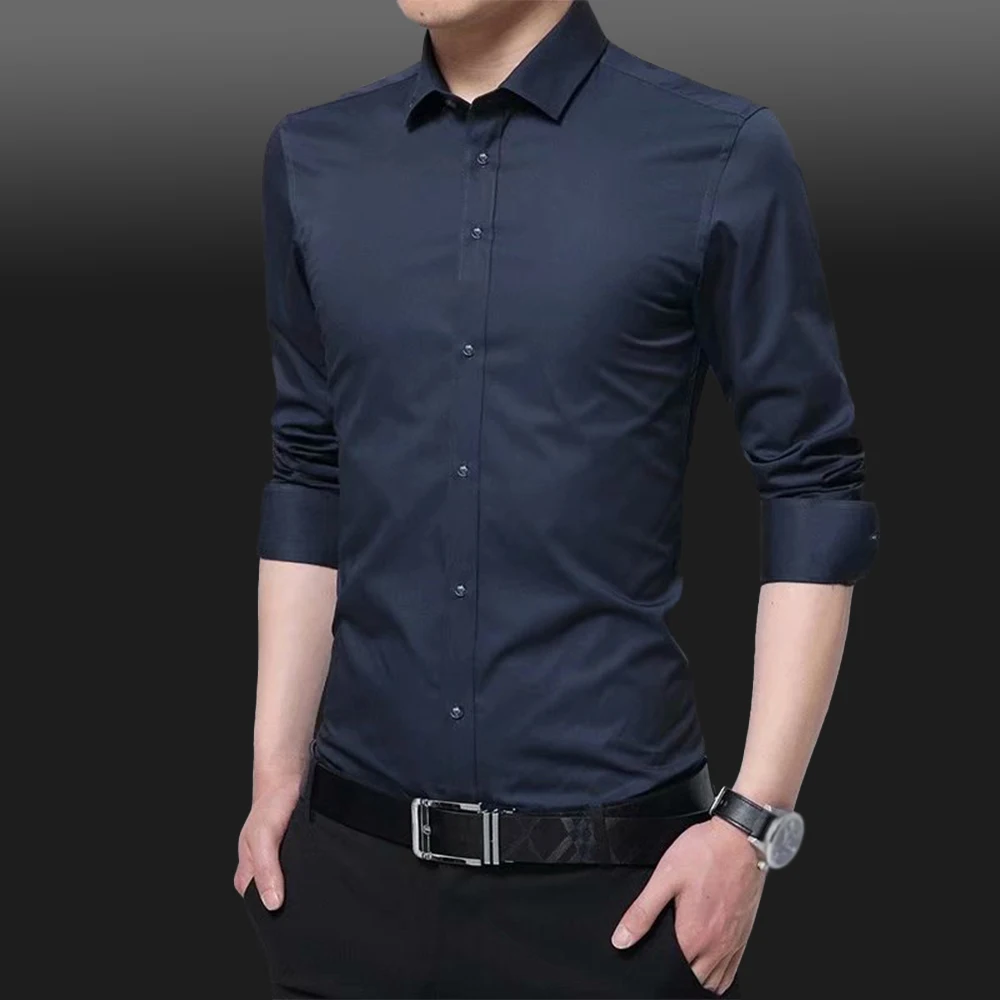 Men Long Sleeve Shirts Office Business Formal Dress Shirt Man Casual Blouse Solid Slim Fit Tops Fashion Male Clothing