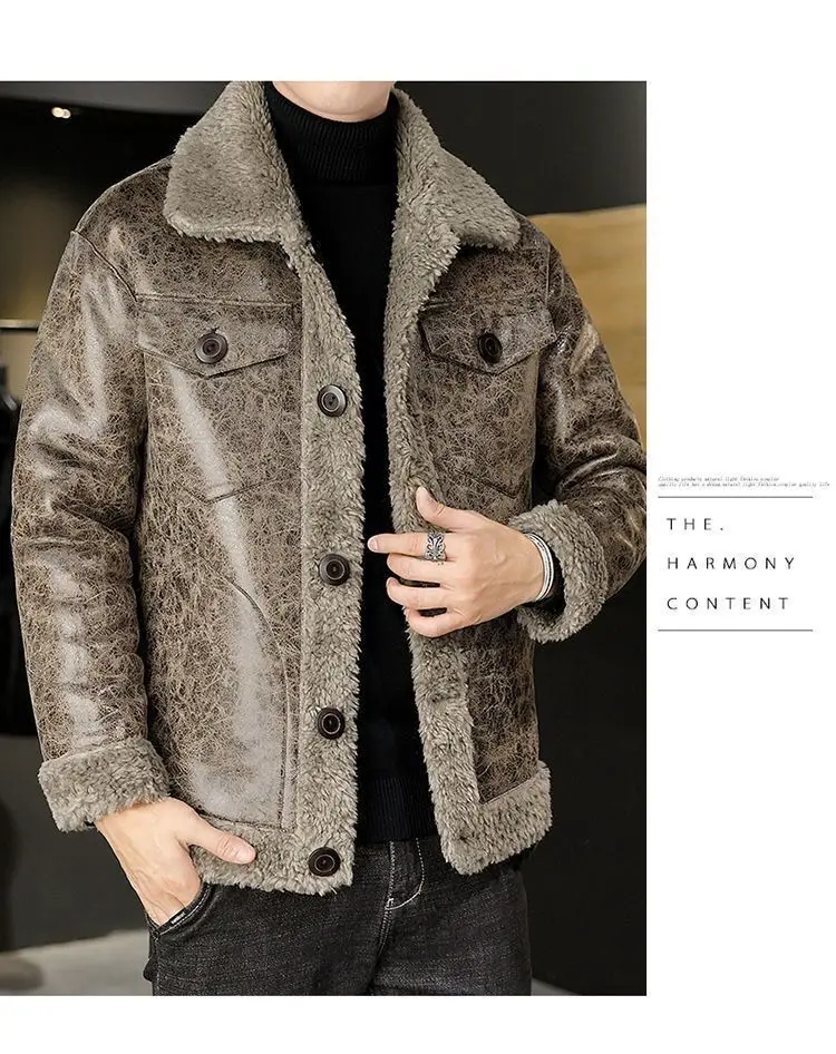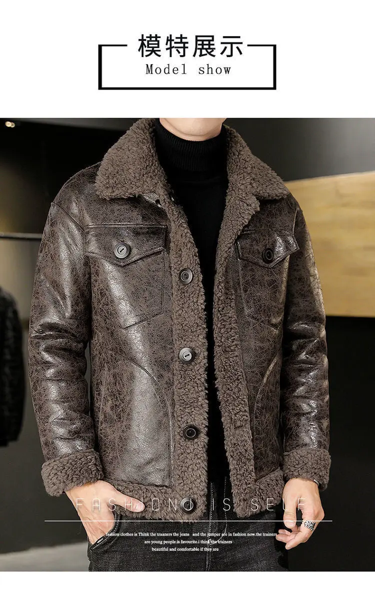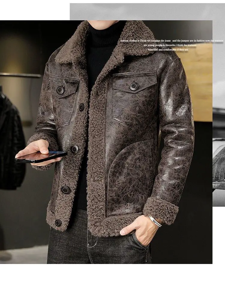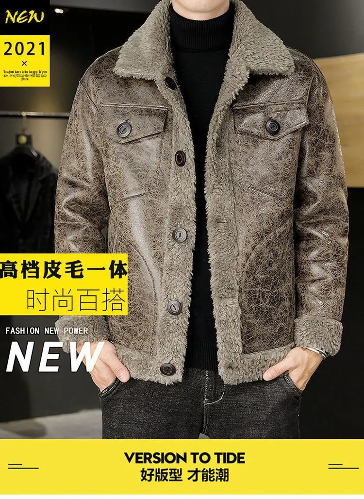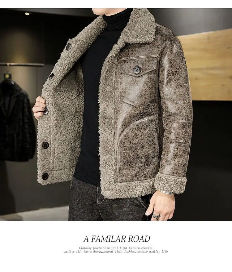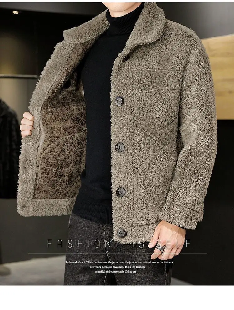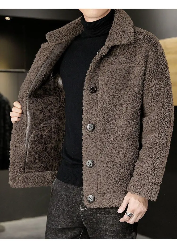 Men's fur one-piece coat in autumn and winter New cashmere reversible lapel jacket Slim fit top