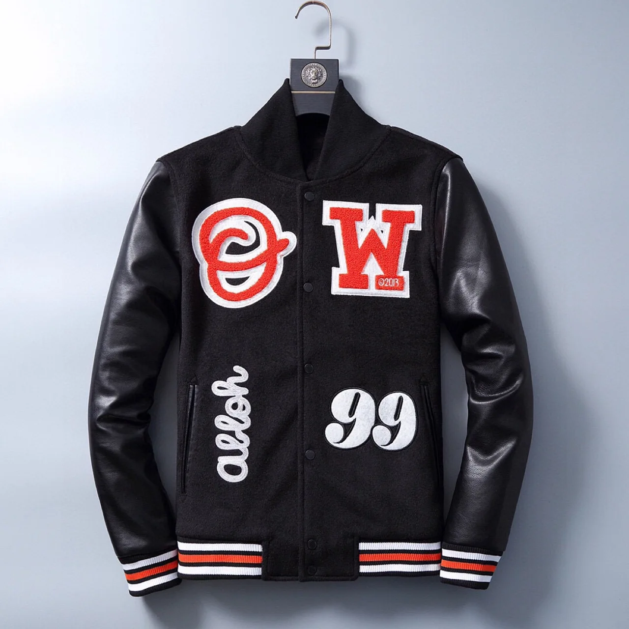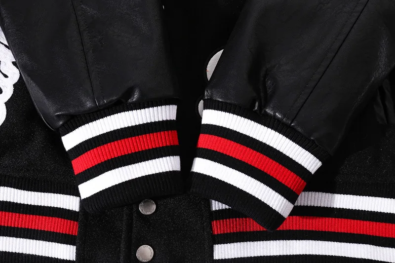 New luxury 2022 Men Black Flocking Striped Pu Leather Varsity Coats & Jackets / Down Coats Cotton warm Winter Thicken A396