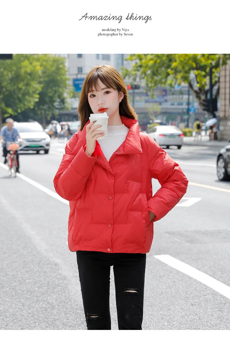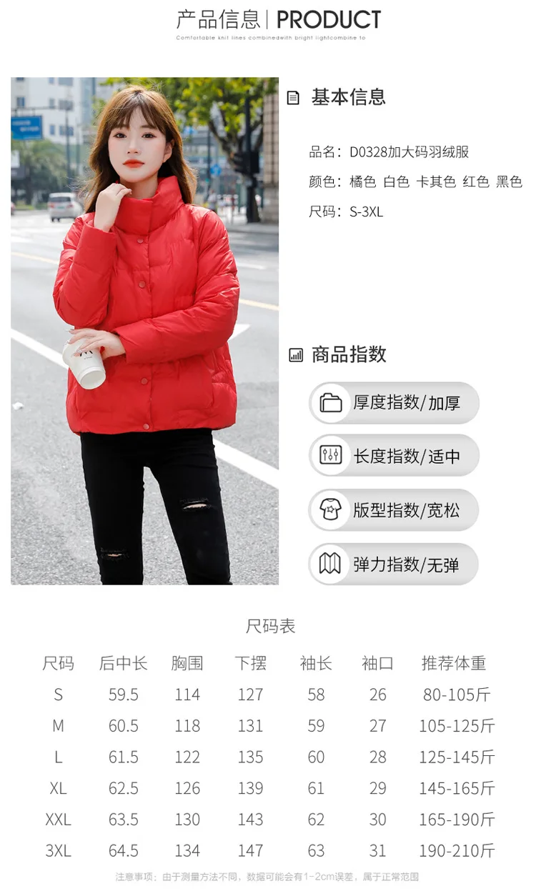 New winter 2022 plus-size down jacket women's stand-up collar short light loose coat fashion trend