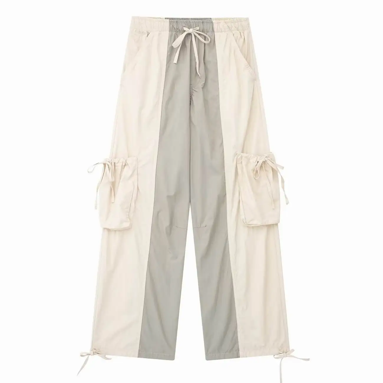 Parachute Trouser Women Spring 2023 New Fashion Color Patchwork Elastic Waist Loose Cargo Pant Modern Lady Casual Bottom Wears
