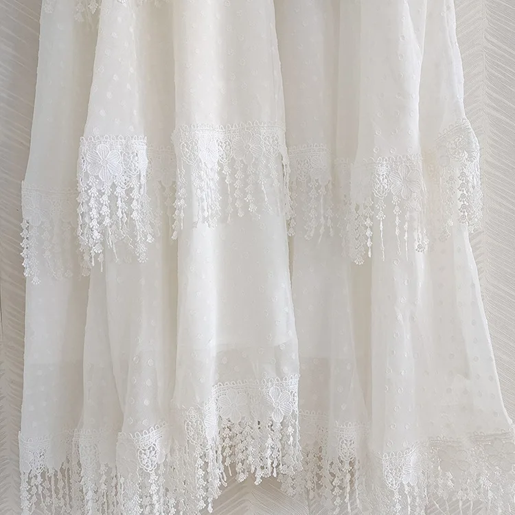 Runway Fashion 2022 Autumn Winter Vintage Long Layered Dress Women Hollow Out Tassel Patchwork Dot Black White Party