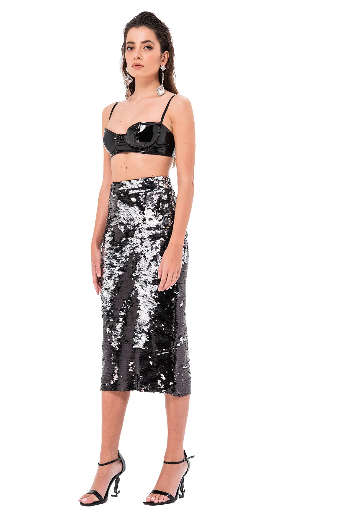 Sparkle Sequined Office Lady Pencil Skirts Women Skirt Teal Length Sequined Skirts Zipper Sheath Female Bottom
