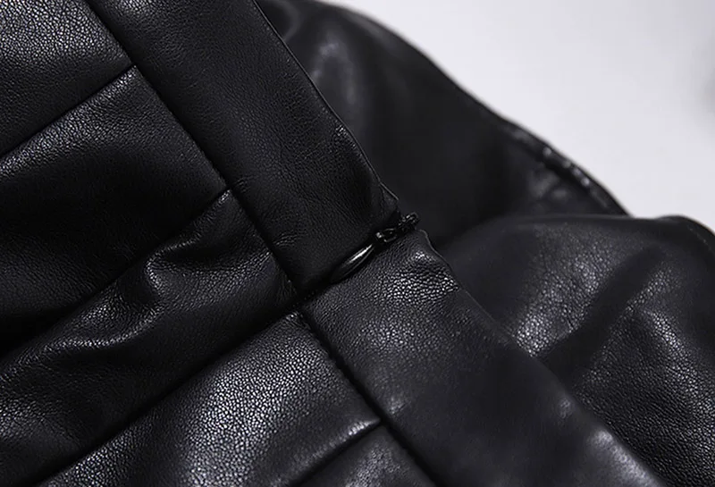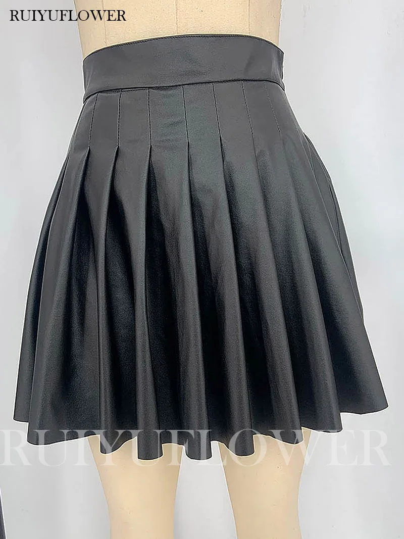 Spring Autumn Lady Sexy Black Mini PU Pleated Skirts Female Ruffle High Waist Casual Basic Faux Leather UltraShort Women Clothes
