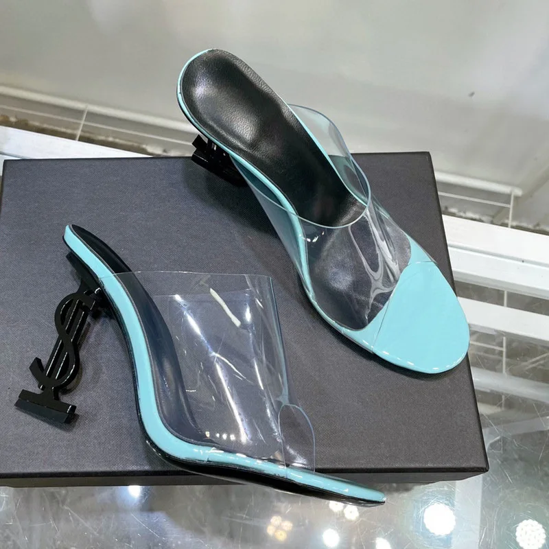 Summer See-through PVC Sandals Women Stiletto High Heel Slides Clear Sexy Ladies Shiny Strange Style Mules Las mujeres Party