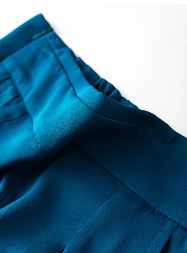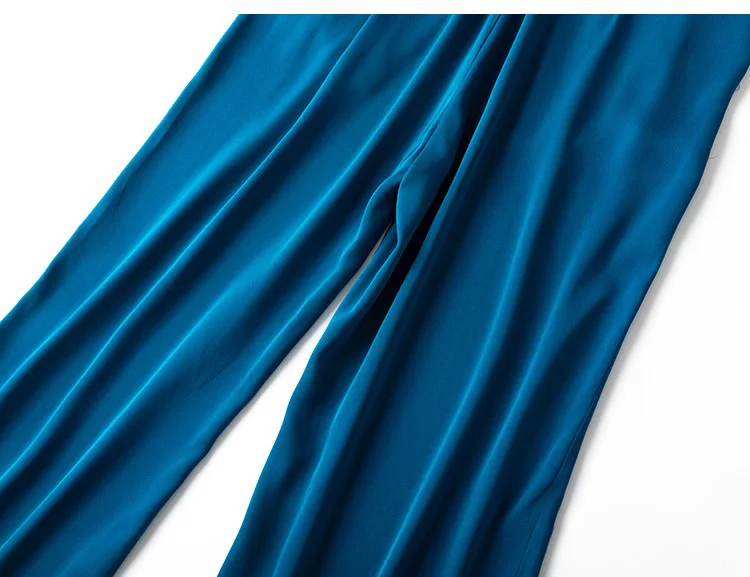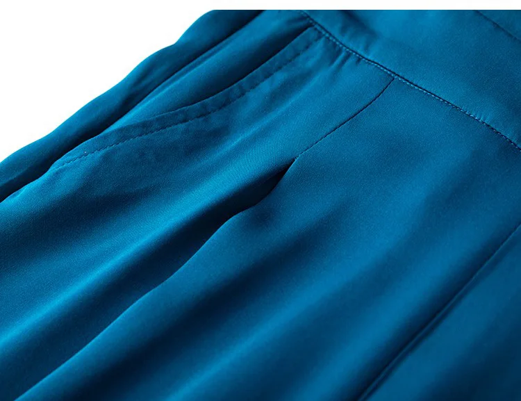 SuyaDream Woman Wide Leg Pants 93%Silk 7%Spandex Elastic Waist Solid Office Lady Chic Trousers 2022 Spring Summer Bottoms Navy
