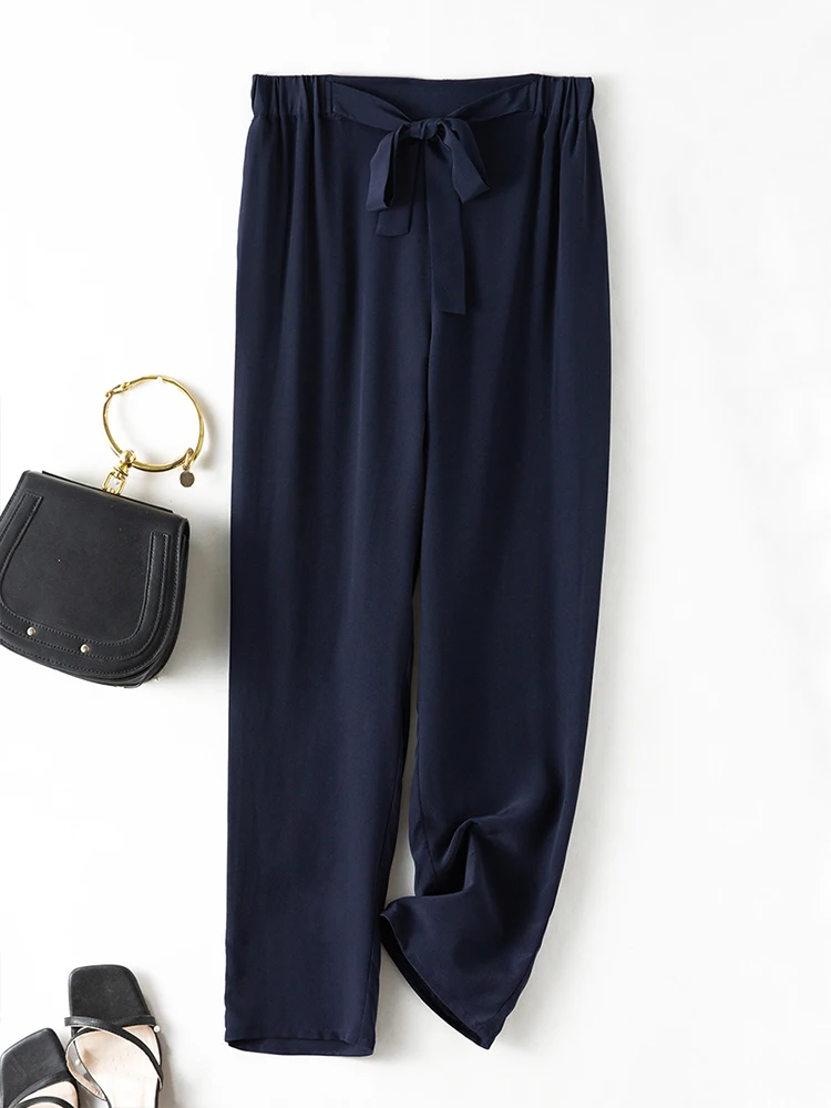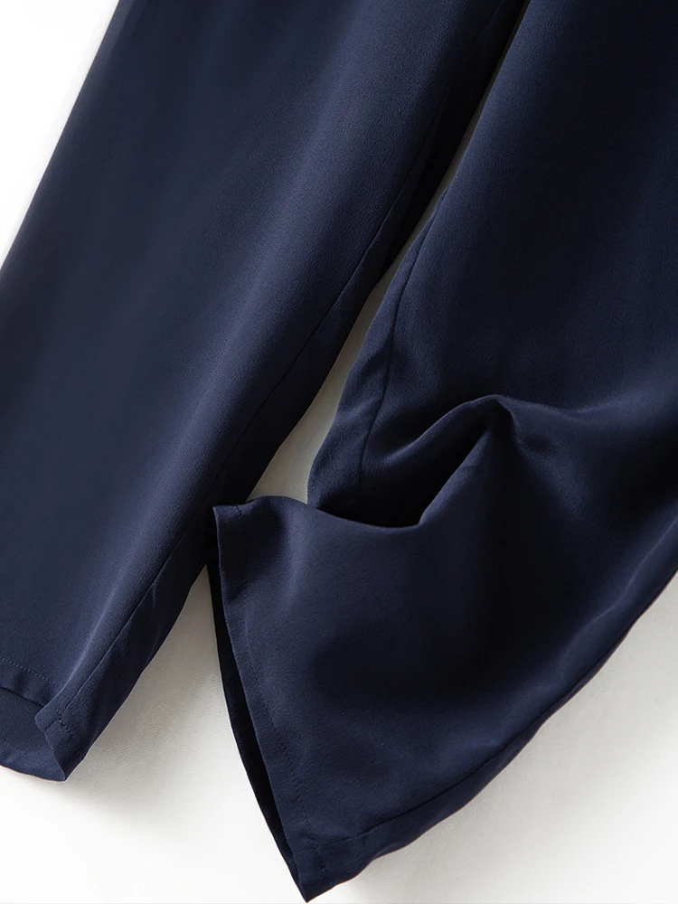 SuyaDream Womans Harem Pants 100%Silk Crepe De Chine Elastic Waist Ankle-length Chic Trousers 2022 Spring Summer Bottoms Navy