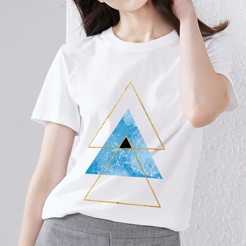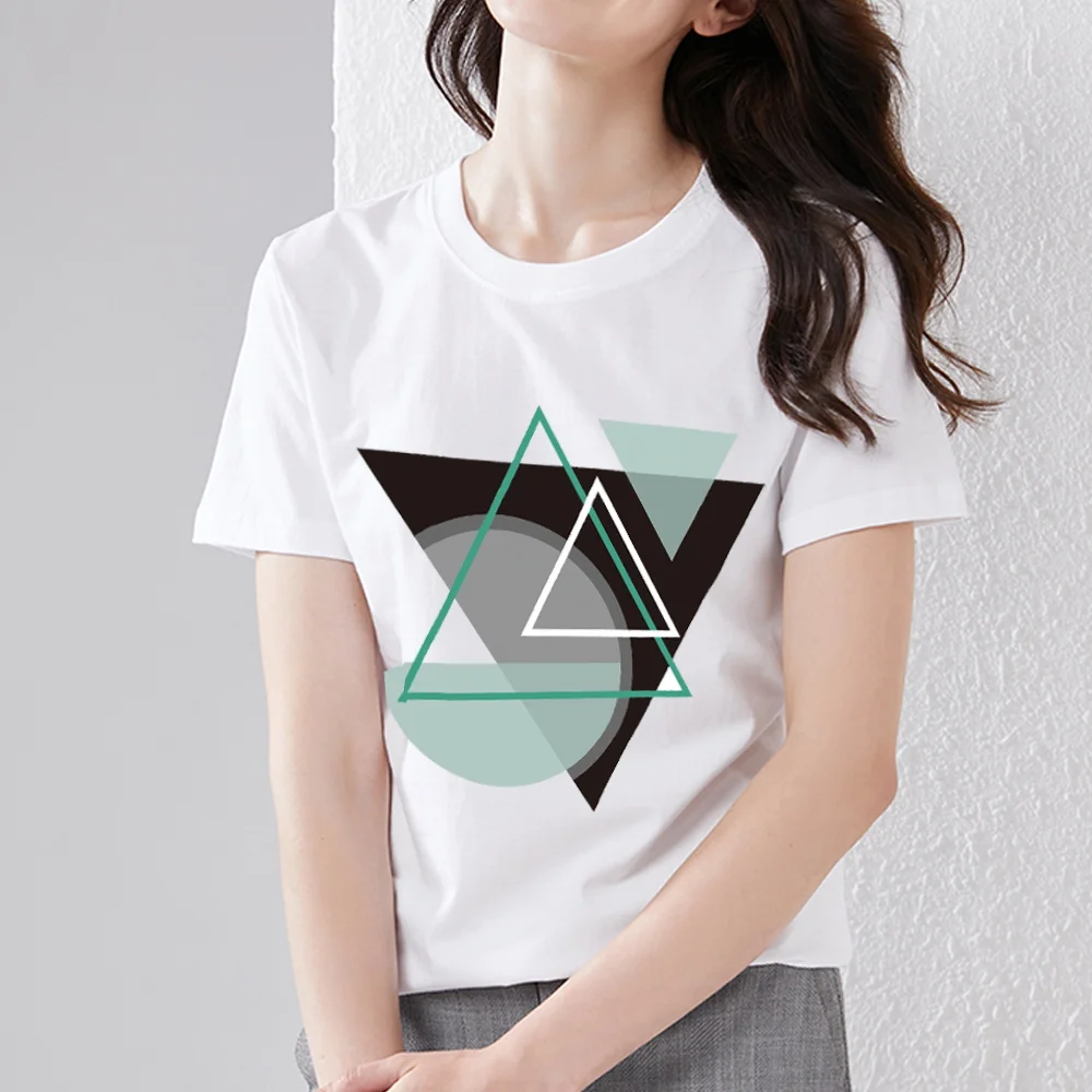 T-shirt Women's Small and Fresh Slim-fit All-match Blouse Basic Design Geometric Pattern Printing O-neck Simple Commuter Wear
