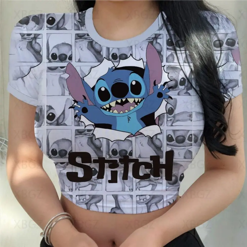 T-shirts Slim Fit Y2k Print Fashion Woman Blouses 2022 Disney Stitch Sexy Kawaii Summer Shirt Cartoon Crop Top Women's T-shirt
