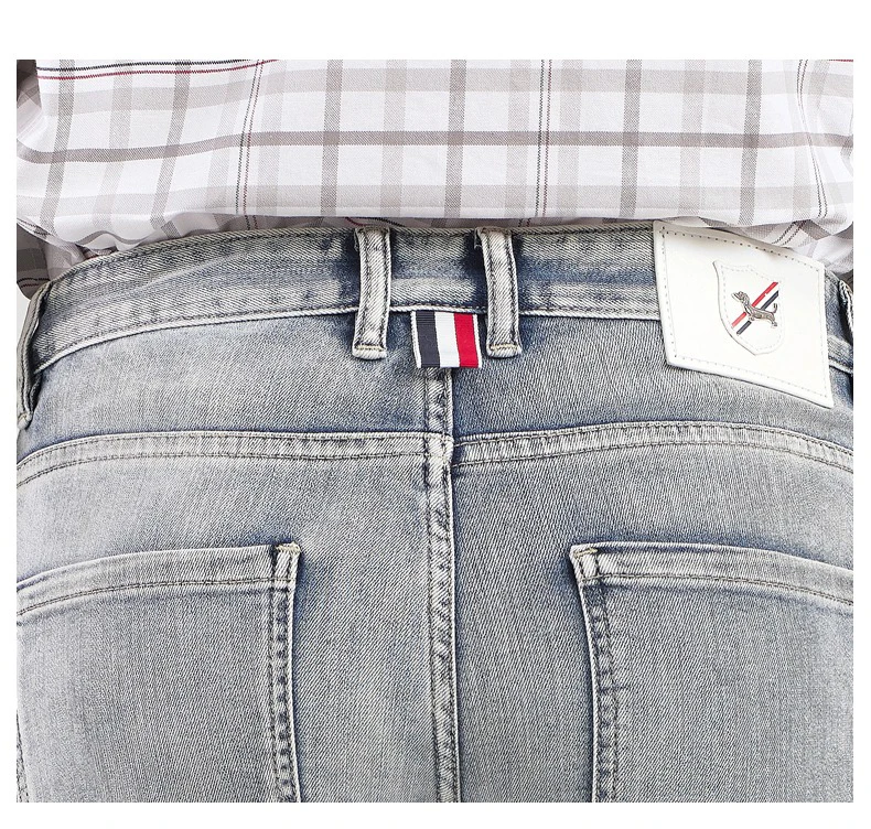 TB THOM Men’s Classic Jeans Korean Trend Regular Fit Comfort Flex Waist Pants Fashion Brand 5-Pocket 4-Stripes Trousers for Men