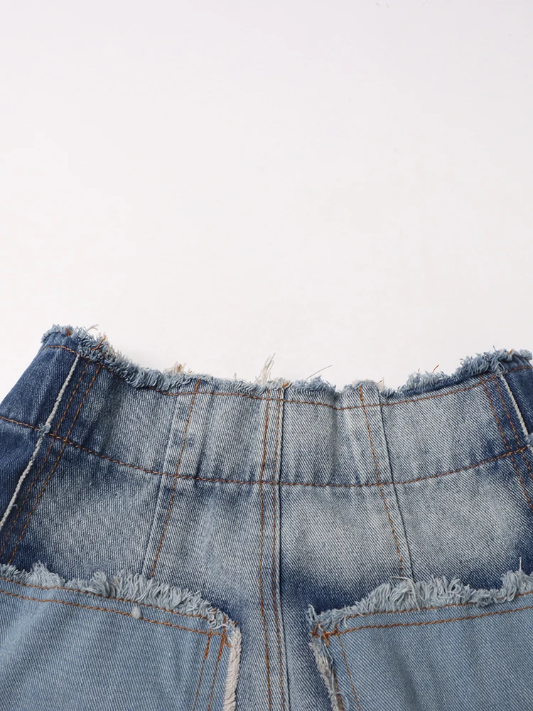 TWOTWINSTYLE Casual Denim Patchwork Women Trousers High Waist Hit Color Big Size Wide Leg Pants Female Fashion Spring 2020 New